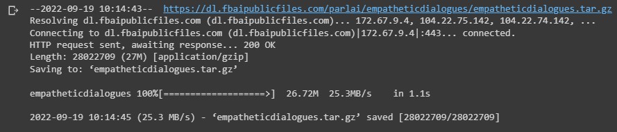 !wget "https://dl.fbaipublicfiles.com/parlai/empatheticdialogues/empatheticdialogues.tar.gz"