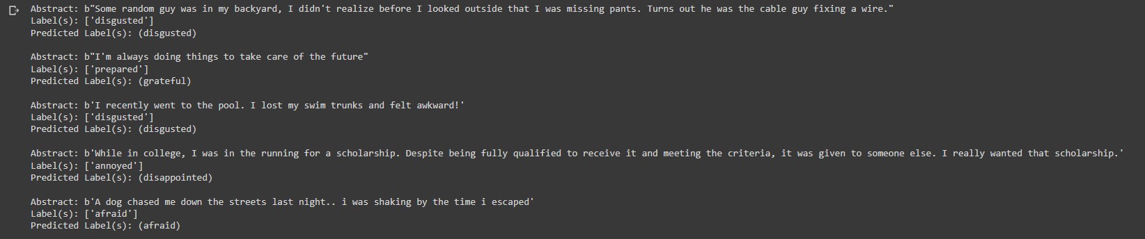 idx = np.random.randint(test_dataframe.shape[0]) sample_label = train_dataframe['grouped_emotions'].iloc[idx] print(f"Original label: {sample_label}") label_binarized = lookup([sample_label]) print(f"Label-binarized representation: {label_binarized}")